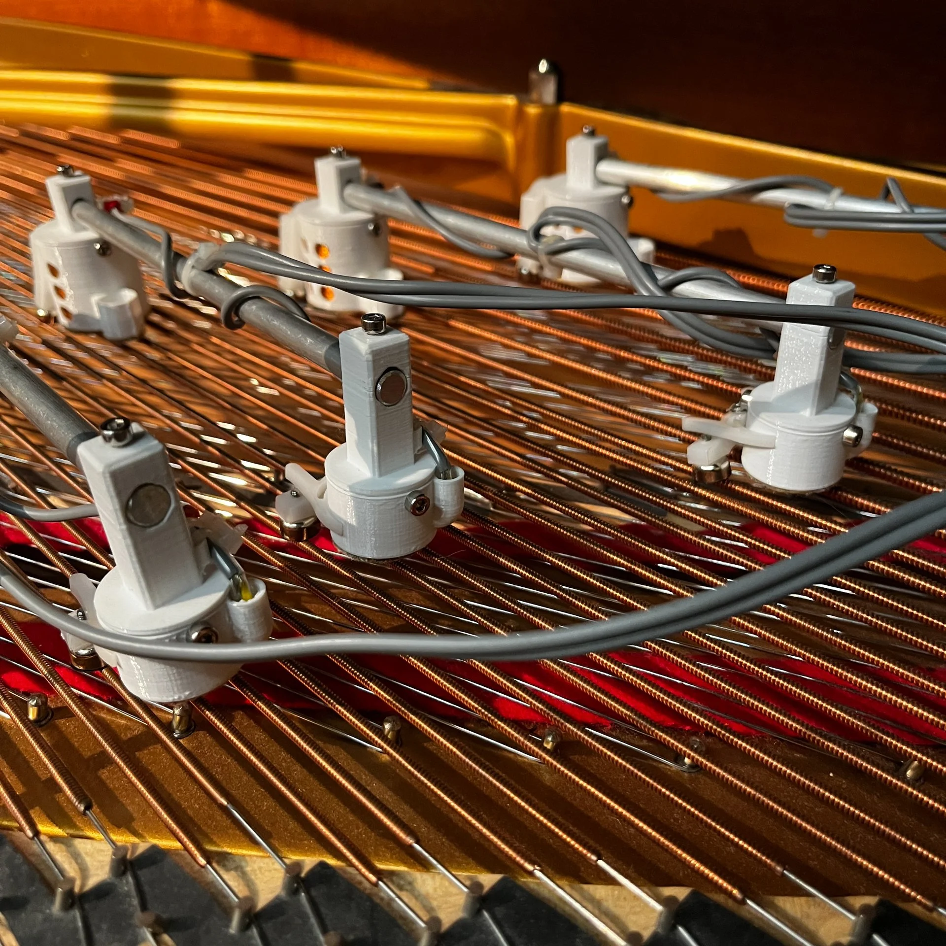 Joanna Ward adjusts Sam Underwood’s robotic device inside the piano