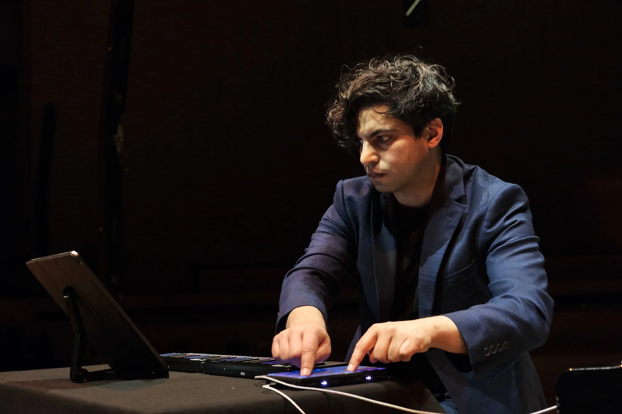 Zubin Kanga exploring a new TouchKeys hybrid instrument created by Andrew McPherson