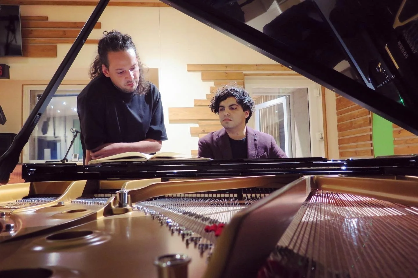 Zubin Kanga working with Louis d’Heudieres recording Debussy for d’Heudieres new piece for Cyborg Soloists
