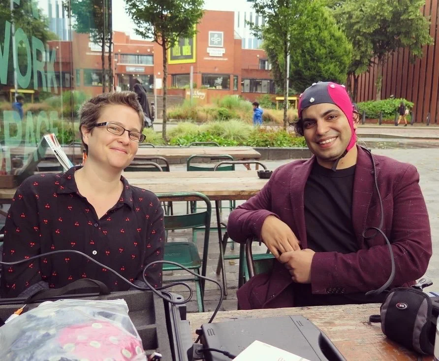 Emily Howard and Zubin Kanga - Zubin is wearing an EEG cap by ANT Neuro