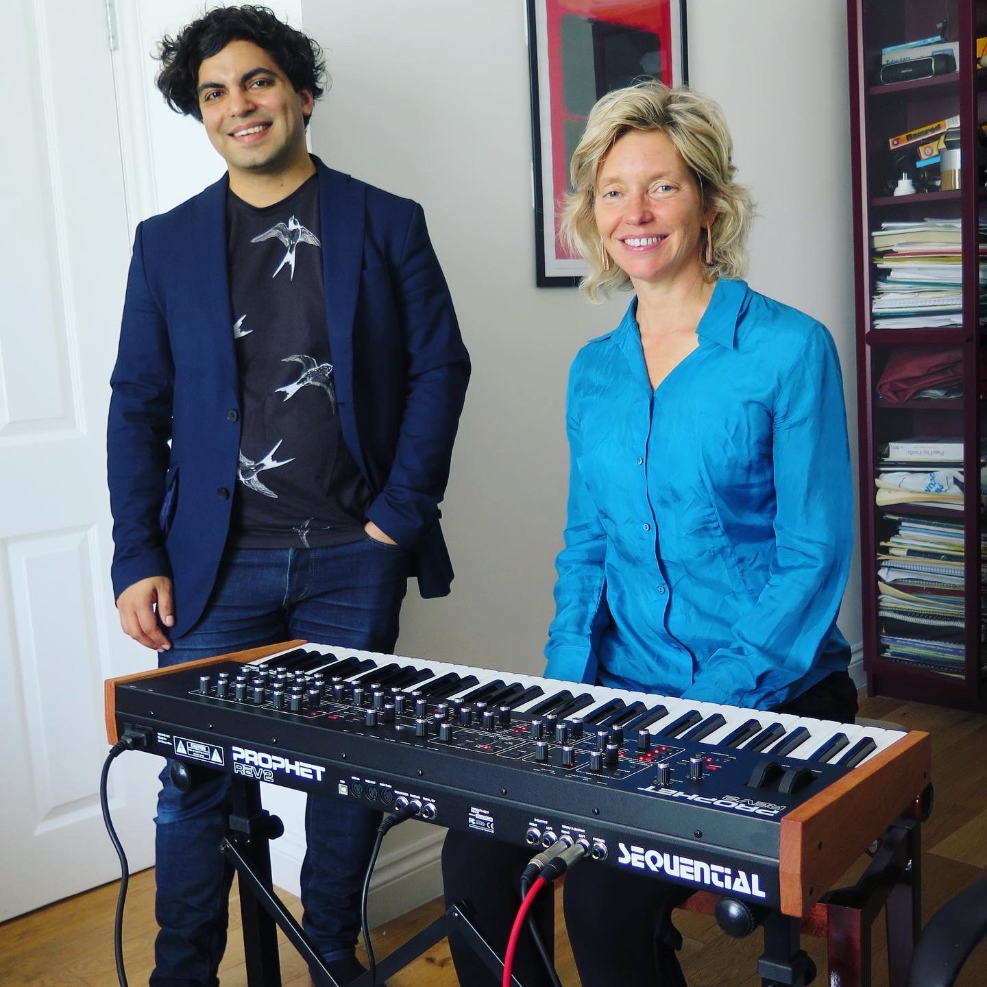 Tansy Davies trying out a new Sequential synth with Zubin Kanga